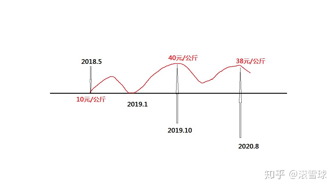 那么現(xiàn)在是一個(gè)什么情況呢?2020年8月中旬的時(shí)候,生豬價(jià)格另外一個(gè)次高點(diǎn),已經(jīng)明顯的確立了。這就是后來8月份之后,生豬養(yǎng)殖公司的股價(jià)普遍大幅回落的本質(zhì)原因。