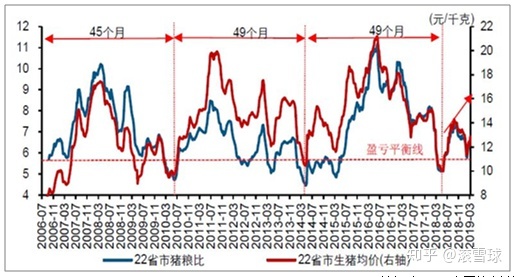 我們?cè)購(gòu)?fù)盤一下生豬養(yǎng)殖上市公司股價(jià)的表現(xiàn)。2018年8月份 在東北首選出現(xiàn)了非洲豬瘟。生豬養(yǎng)殖上市公司牧原股份、正邦科技,在接下來了幾個(gè)月時(shí)間內(nèi),股價(jià)表現(xiàn)的相對(duì)比較穩(wěn)定。這里有一個(gè)大的背景,2018年5月份之后豬料比已經(jīng)低于5:1,我國(guó)國(guó)務(wù)院農(nóng)業(yè)農(nóng)村部有一個(gè)監(jiān)測(cè)數(shù)據(jù),就當(dāng)豬料比低于5:1的時(shí)候?yàn)橹囟认碌M(jìn)入紅色預(yù)警區(qū)域。此時(shí)多數(shù)養(yǎng)豬場(chǎng)無利可圖,嚴(yán)重虧損。財(cái)務(wù)報(bào)表上的數(shù)據(jù)也是這樣的,在2018年二季度的時(shí)候,牧原股份、正邦科技,凈利潤(rùn)都是虧損的。也就是說當(dāng)時(shí)非洲豬瘟發(fā)生之后,各生豬養(yǎng)殖公司宰殺了大量的母豬,肥豬子豬。但是市場(chǎng)預(yù)期最困難的時(shí)候已經(jīng)來了。當(dāng)豬糧比跌破5:1之后,生豬養(yǎng)殖公司本身也會(huì)去產(chǎn)能。這場(chǎng)疫情呢,讓去產(chǎn)能的速度變得更快更猛。隨著市場(chǎng),在2018年12月底企穩(wěn)之后。A股的生豬養(yǎng)殖公司在2019年開始了猛烈的上漲。4月上旬達(dá)到了歷史性的高點(diǎn)。雖然2019年。一季度生豬的價(jià)格并沒有表現(xiàn)出強(qiáng)烈的上漲 ,但是由于疫情去產(chǎn)能的程度特別猛,市場(chǎng)預(yù)期,未來生豬的價(jià)格會(huì)出現(xiàn)猛烈的上漲。2019年4月中旬,生豬養(yǎng)殖公司的股價(jià)和大盤基本在相同的時(shí)間內(nèi)達(dá)到了歷史的高點(diǎn)。之后呢,雖然生豬的價(jià)格持續(xù)性的上漲,一直上漲到2019年10月份。但是我們發(fā)現(xiàn)呢 ,生豬養(yǎng)殖公司的股價(jià)并沒有跟隨生豬的價(jià)格同步上漲。即使行業(yè)的龍頭,牧原股份從4月份到10月份,股價(jià)的漲幅也是比較小的。