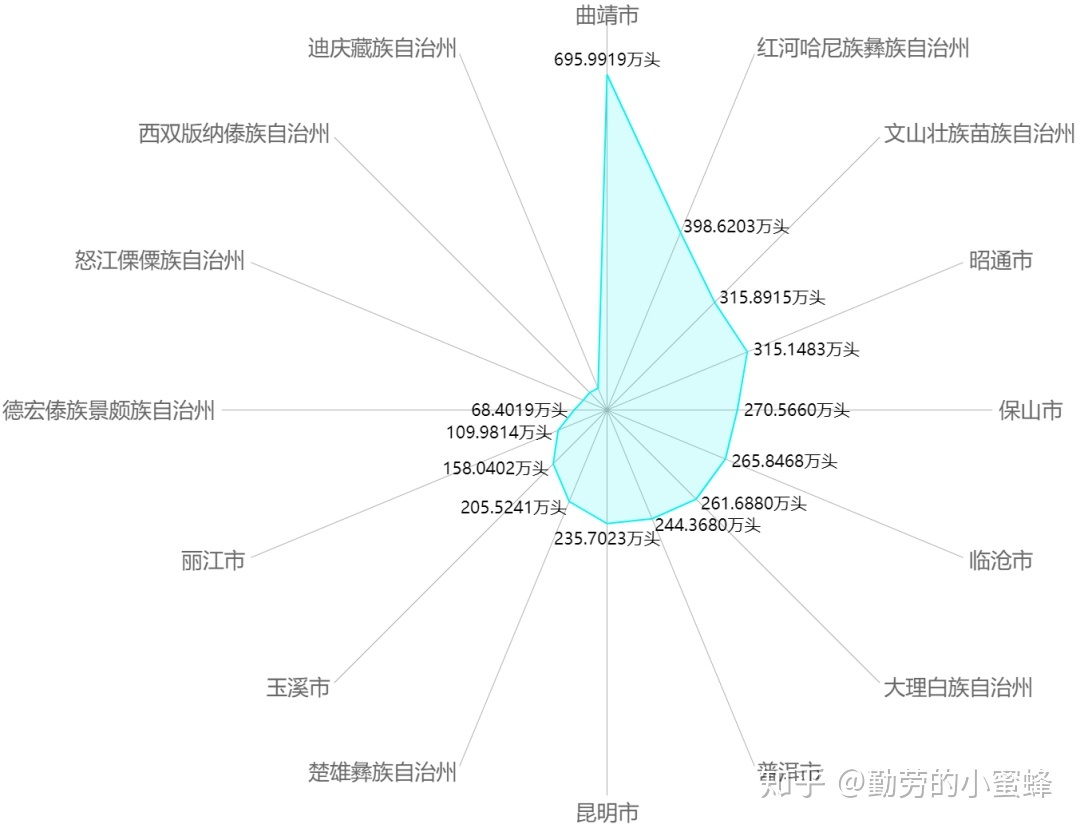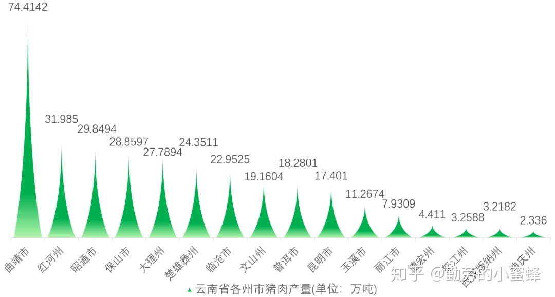 2019年底,云南省豬肉產(chǎn)量達(dá)254.7萬噸,在全國排名第4。在云南省16個地級行政區(qū)劃單位中,曲靖市以74.4142萬噸的產(chǎn)量遙遙領(lǐng)先其它省域。