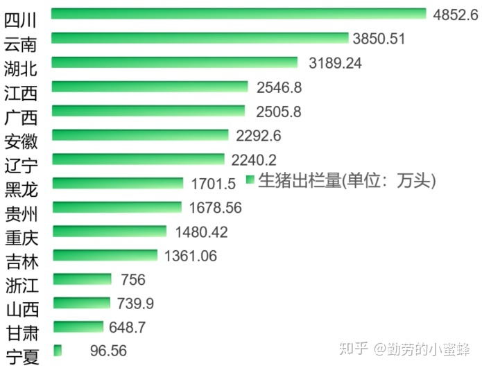 從生豬出欄量來看:四川、湖北、江西相對較高;