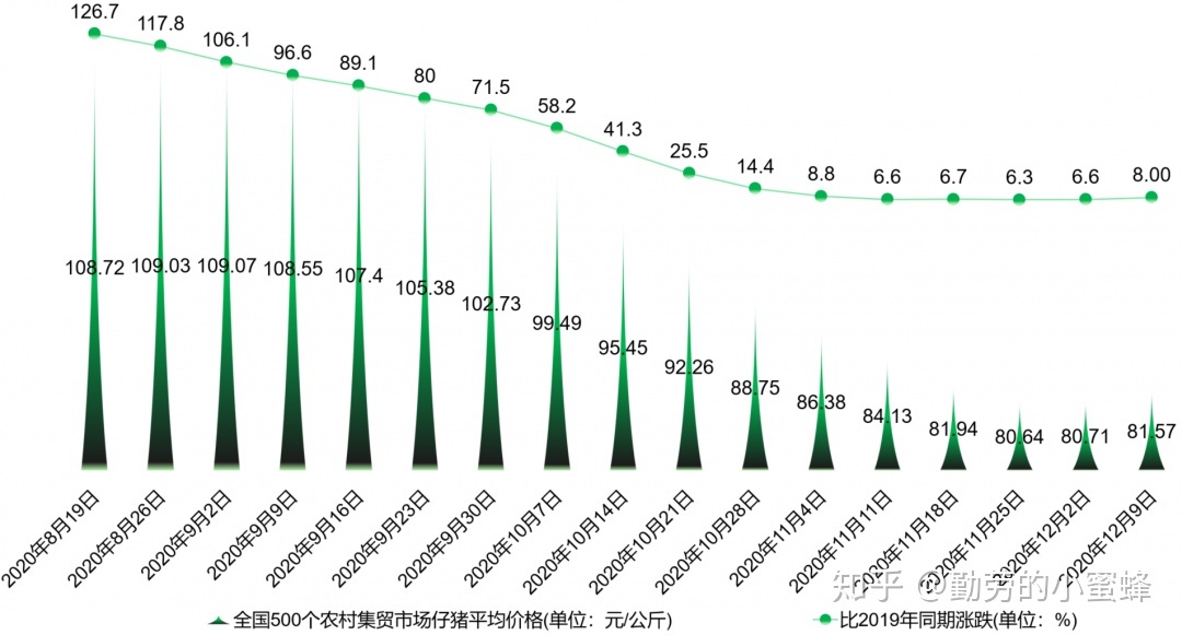 全國500個農(nóng)村集貿(mào)市場仔豬平均價格也自2020年9月6日的108.55元/公斤首降以來,連續(xù)跌至11月25日的80.64元/公斤后,再次迎來了上漲,12月9日已漲至81.57元/公斤。