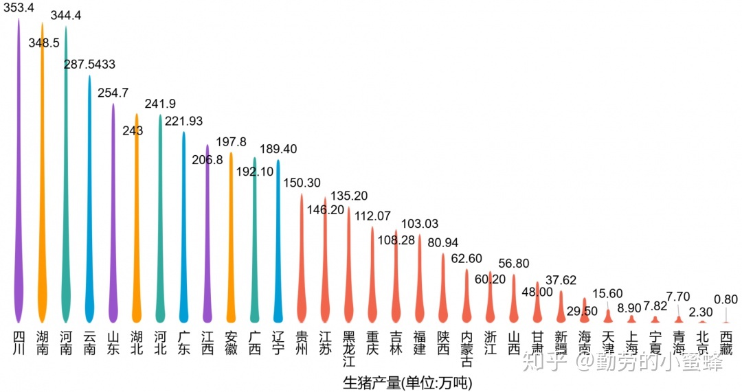 從豬肉產(chǎn)量來看:四川、湖南、河南、云南等省域規(guī)模較大;