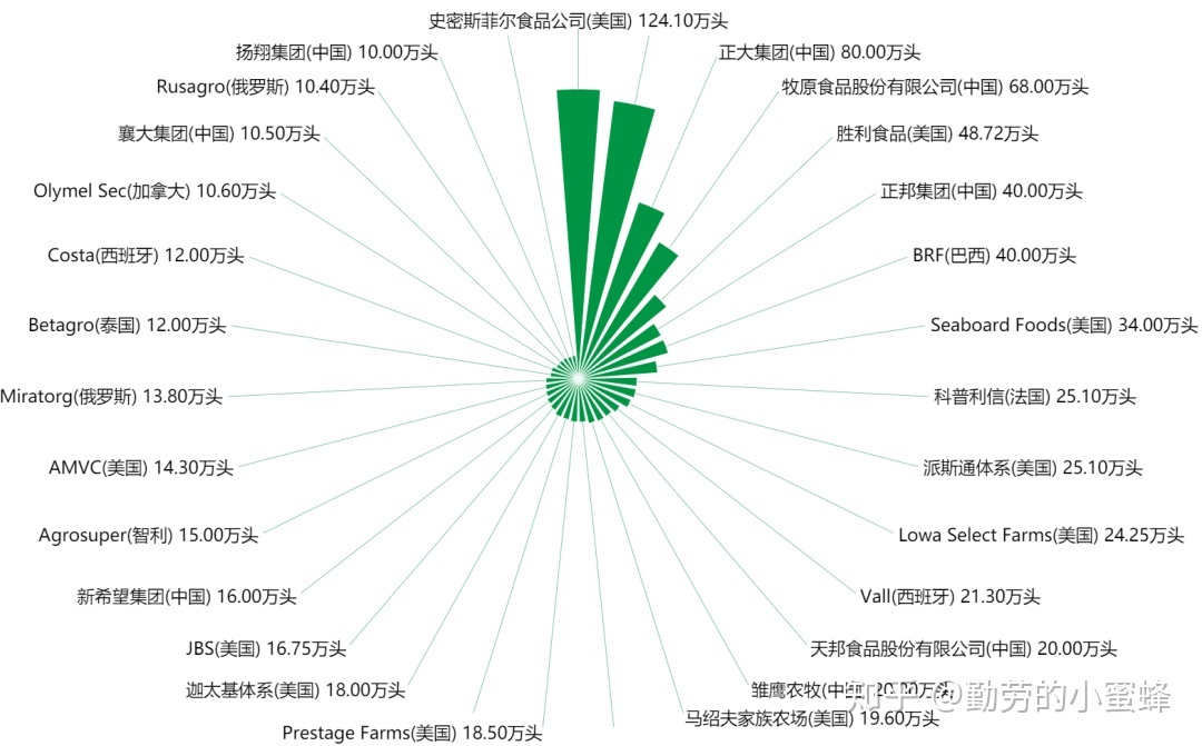 2019全球養(yǎng)豬企業(yè)實(shí)力榜數(shù)據(jù)顯示:全球31家10萬頭母豬企業(yè),中國占了10家,其中4家位列前10。