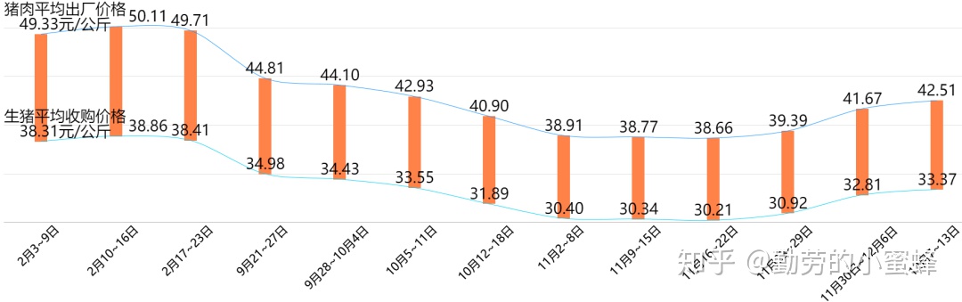 第50周(即:12月7日~12月13日),全國規(guī)模以上生豬定點(diǎn)屠宰企業(yè)生豬平均收購價格為33.37元/公斤,環(huán)比上漲1.7%,較2019年同期下降1.0%。白條肉平均出廠價格為42.51元/公斤,環(huán)比上漲2.0%,較2019年同期下降1.6%。