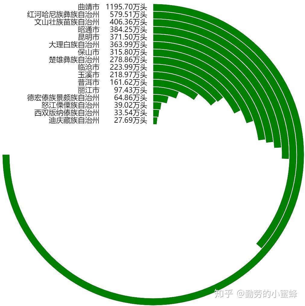 剖析云南省16個州市129個縣域的數(shù)據(jù),生豬存欄量最多的依舊是曲靖市,然后依次是:曲靖市、紅河哈尼族彝族自治州、文山壯族苗族自治州、昭通市、保山市、臨滄市、大理白族自治州、普洱市、昆明市、楚雄彝族自治州、玉溪市、麗江市、德宏傣族景頗族自治州、怒江傈僳族自治州、西雙版納傣族自治州、迪慶藏族自治州。