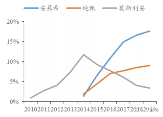 結(jié)果出乎很多人的意料,雖然莫斯利安占有先發(fā)優(yōu)勢,但伊利蒙牛僅用了一年時間就追上了莫斯利安常溫酸奶的市場份額。它后期被安慕希和純甄迎頭趕超,也體現(xiàn)出以光明為首的其他乳企的渠道劣勢和營銷劣勢。