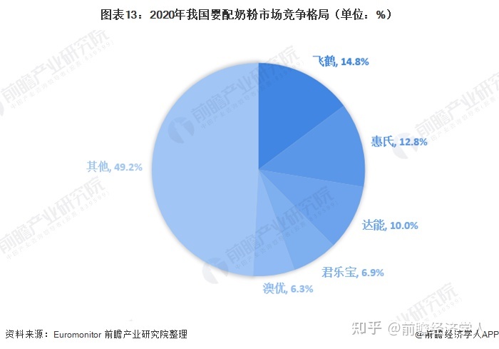 從嬰配奶粉細(xì)分市場品牌占比來看,飛鶴、惠氏、達能占據(jù)嬰配奶粉市場的前三,合計占比達到37.6%。飛鶴為嬰配奶粉品牌行業(yè)第一,其市場份額為14.8%。