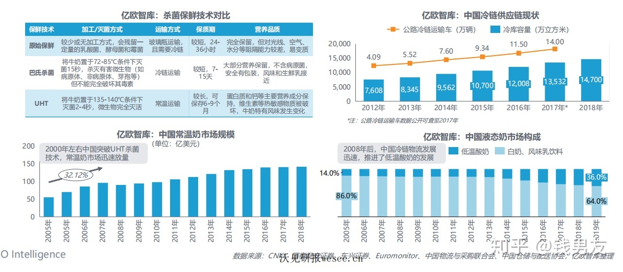 ?◆ 技術(shù)突破推進(jìn)乳制品行業(yè)快速發(fā)展,殺菌技術(shù)、冷鏈技術(shù)曾大力推動(dòng)常溫奶和低溫奶的普及:2000年左右中國(guó)引入U(xiǎn)HT殺菌技術(shù), 常溫奶市場(chǎng)迅速放量;2008年后,隨著中國(guó)冷鏈物流的發(fā)展,低溫酸奶的占比開始大幅提升;乳制品未來(lái)技術(shù)變革想象力在數(shù)字化。