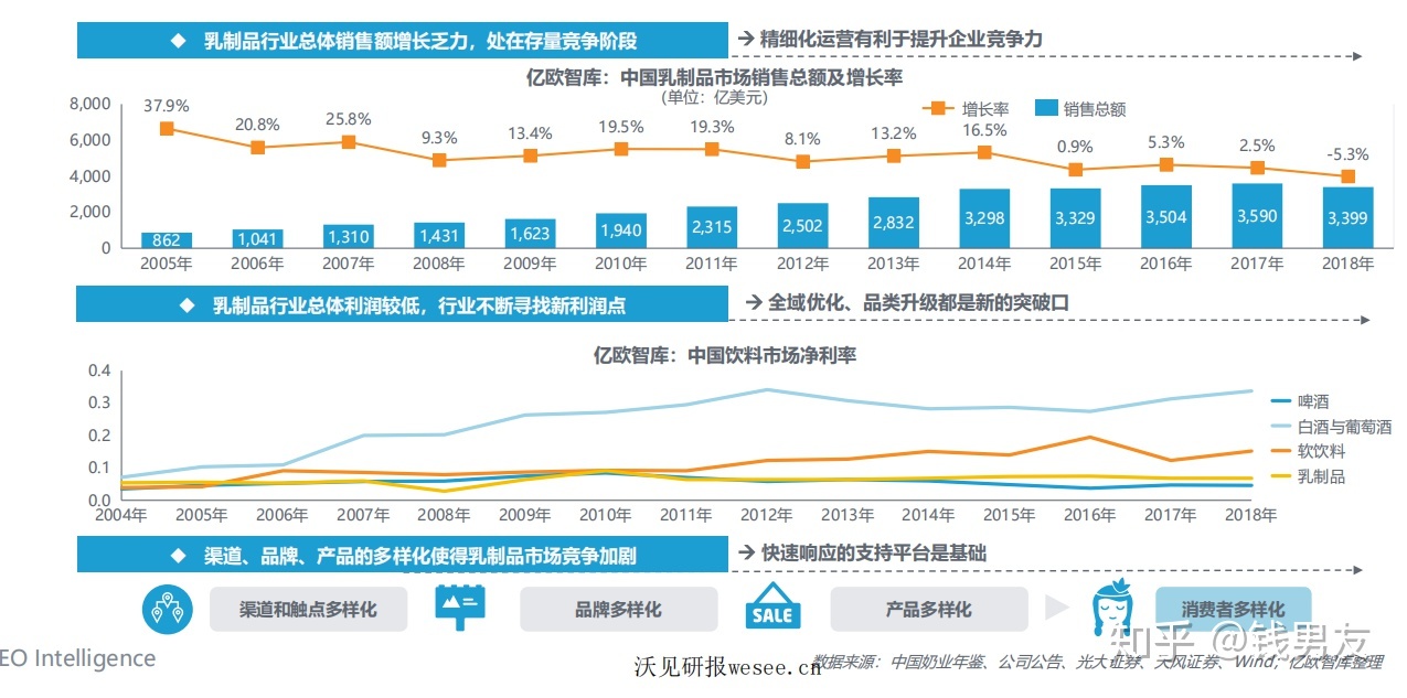 消費(fèi)者對(duì)乳制品需求量仍在增加,但渠道、品牌、產(chǎn)品的多元 化使得乳制品市場(chǎng)競(jìng)爭(zhēng)加劇