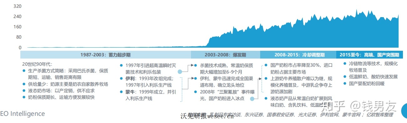 中國(guó)乳制品行業(yè)自起步經(jīng)歷蓄力、爆發(fā)、冷卻階段,目前積極 向高端健康、國(guó)產(chǎn)占比提升方向發(fā)展