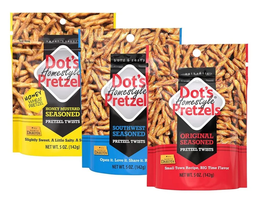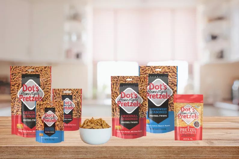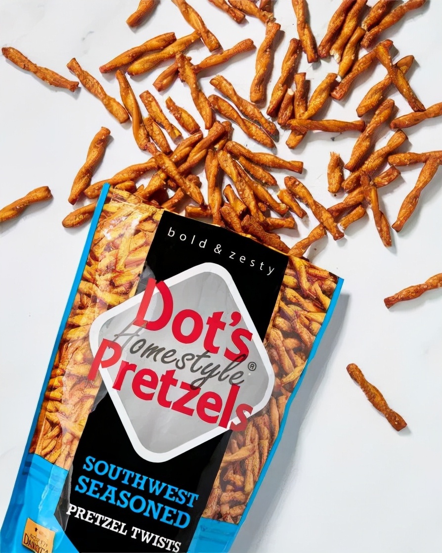 Dot's Homestyle Pretzels(下文簡稱Dot's)以椒鹽脆餅產品聞名,椒鹽脆餅是美國常見的一種咸味零食,通常以結型呈現(xiàn),而Dot's則使用了一種棒狀的形狀,還生產了富有特色的西南風味和蜂蜜芥末等口味。