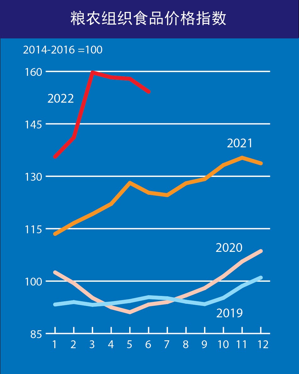 糧農(nóng)組織首席經(jīng)濟(jì)學(xué)家馬克西莫·托雷羅·庫倫表示,“盡管糧農(nóng)組織食品價格指數(shù)在6月連續(xù)第三個月下跌,但仍然接近今年3月創(chuàng)下的歷史高點。當(dāng)時推動全球食品價格高漲的因素仍在發(fā)揮作用,重點包括全球需求強勁、一些主要國家天氣條件不利、生產(chǎn)和運輸成本高漲、新冠疫情破壞供應(yīng)鏈,以及烏克蘭戰(zhàn)爭持續(xù)進(jìn)行帶來的不確定性。”
