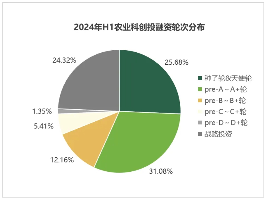 2024年上半年,在109起農(nóng)業(yè)科創(chuàng)投融資事件中,有74起披露了融資輪次。