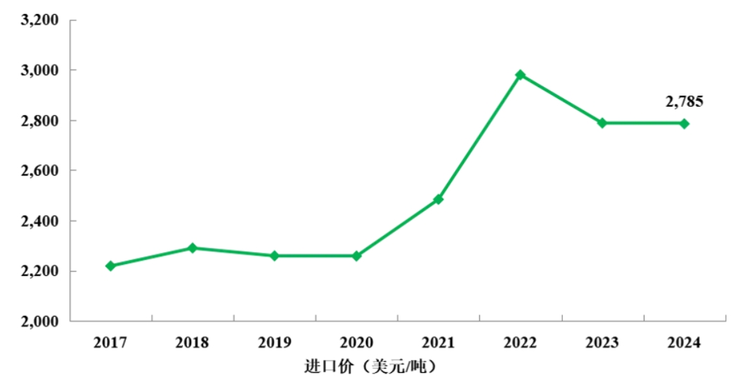 中國(guó)乳制品進(jìn)口價(jià)格,2017-2024
