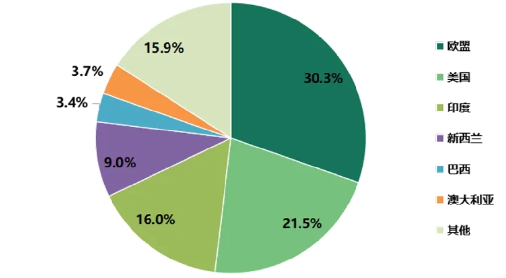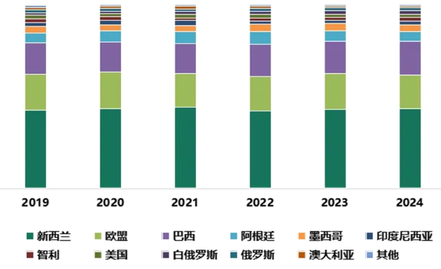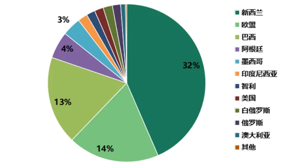 2024年全球全脂奶粉產(chǎn)量分布格局
