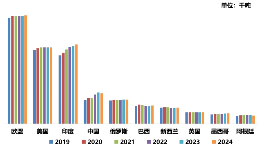 全球主產(chǎn)國(guó)奶牛存欄,2019-2024