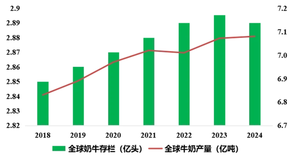 全球奶牛存欄及牛奶產(chǎn)量,2019-2024