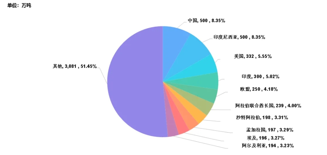圖,2023/24榨季全球國家(地區(qū))食糖進口量及占比