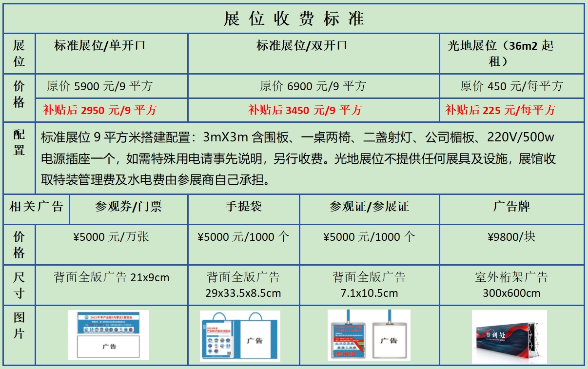 第八屆牛羊產業(yè)(內蒙古)展覽會已獲得會展扶持專項補貼資金,將有100家企業(yè)享受補貼名額,可獲得1個9平方米免費展位補貼(申請費:1000元/牛羊相關企業(yè))如需增加展位按標準展位費收取。