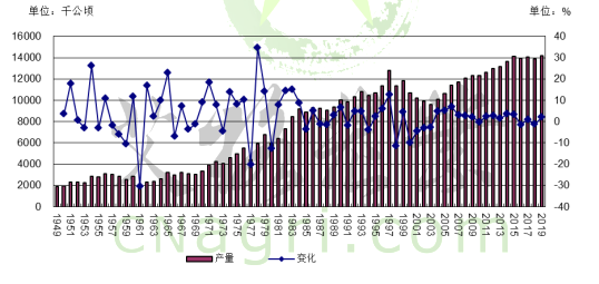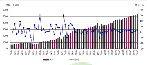 圖1.3 1949-2019年夏糧總產(chǎn)量
