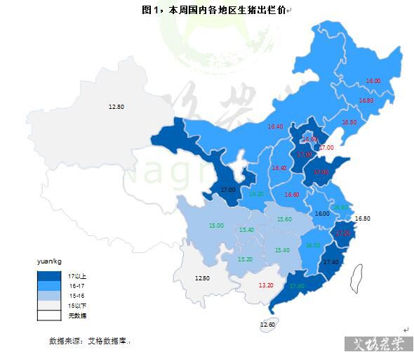 生豬價格為15.90元/千克,環(huán)比下降0.06%。全國豬價最高廣東和福建為17.40元/千克;海南最低為12.60元/千克。