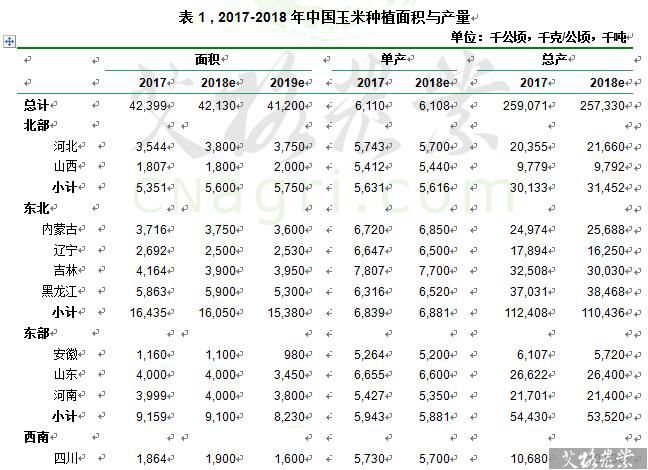 預(yù)計(jì)2019年玉米種植面積比上年下降約2%