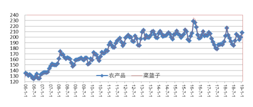農(nóng)業(yè)部農(nóng)產(chǎn)品綜合價格高位回落。2018年全國農(nóng)產(chǎn)品綜合價格指數(shù)為198,較上年上漲4.13%,菜籃子就價格指數(shù)為198.74,較上年上漲4.85%。農(nóng)資價格大幅上漲和流通成本大幅上漲推動農(nóng)產(chǎn)品和菜籃子綜合價格指數(shù)的明顯上漲。菜籃子和農(nóng)產(chǎn)品價格指數(shù)對城鎮(zhèn)居民食品支出產(chǎn)生明顯影響,導致城市消費量的下滑。