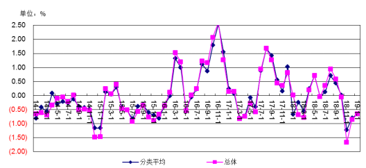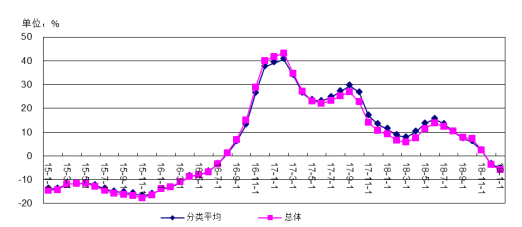2018年各類大宗產(chǎn)品價格總體上漲明顯,連續(xù)3年總體上漲,2018年漲幅回落,總體漲幅由上年26.17%回落大7.52%。分類漲幅有27.05%降到8.55%。