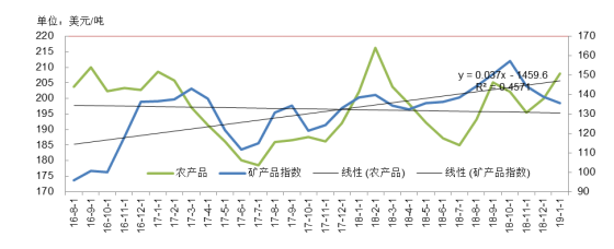 2019年1月礦產(chǎn)綜合價格指數(shù)為136,環(huán)比上漲2.34%,同比下降2.13%;10月份以來監(jiān)測礦產(chǎn)品綜合價格指數(shù)持續(xù)下滑,累計下降13.85%。