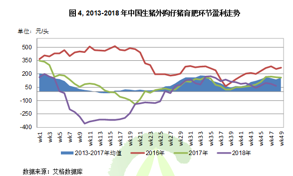養(yǎng)殖環(huán)節(jié):本周自繁自養(yǎng)豬場生豬養(yǎng)殖利潤為114.80元/頭,盈利環(huán)比減少24.06元/頭;外購仔豬育肥的養(yǎng)殖戶毛利潤為64.65元/頭,盈利環(huán)比減少21.48元/頭。