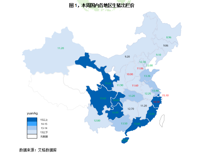 生豬價格為13.14元/千克,環(huán)比下降1.65%。全國豬價最高四川為19.60元/千克;黑龍江最低為8.96元/千克。
