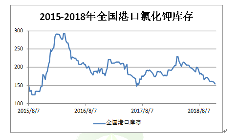 國(guó)內(nèi)廠家氯化鉀庫(kù)存處于偏低位置,進(jìn)口鉀肥到船量偏少,目前主要港口庫(kù)存已下降至150萬(wàn)噸附近,為近三年同期最低水平,這是導(dǎo)致鉀肥價(jià)格上漲的主要原因。