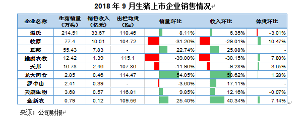 “公司+農(nóng)戶”為企業(yè)分散疫情風(fēng)險(xiǎn),溫氏生豬銷量繼續(xù)增長(zhǎng)。溫氏采取“公司+農(nóng)戶”的養(yǎng)豬模式,與小農(nóng)戶合作,實(shí)現(xiàn)多地養(yǎng)殖,有效分散了疫情風(fēng)險(xiǎn)。9月份,溫氏生豬銷量214.51萬(wàn)頭,月度銷量首次突破200萬(wàn)頭,環(huán)比增加8.11%;銷售收入33.67億元,環(huán)比增加6.35%,業(yè)績(jī)穩(wěn)步提升。同樣,以“公司+農(nóng)戶”為主的正邦科技也實(shí)現(xiàn)了較好的業(yè)績(jī)?cè)鲩L(zhǎng),9月銷售生豬55.43萬(wàn)頭,環(huán)比增加22.74%;銷售收入7.83億元,環(huán)比增加25.08%。