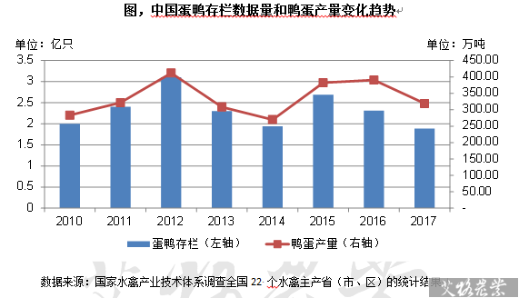 中國蛋鴨飼養(yǎng)量和鴨蛋消費(fèi)量位居世界第一。近幾年,中國蛋鴨存欄在1.94—3.1億之間波動(dòng),年產(chǎn)鴨蛋300—450萬噸,占我國禽蛋總產(chǎn)量的15%左右,蛋鴨養(yǎng)殖
